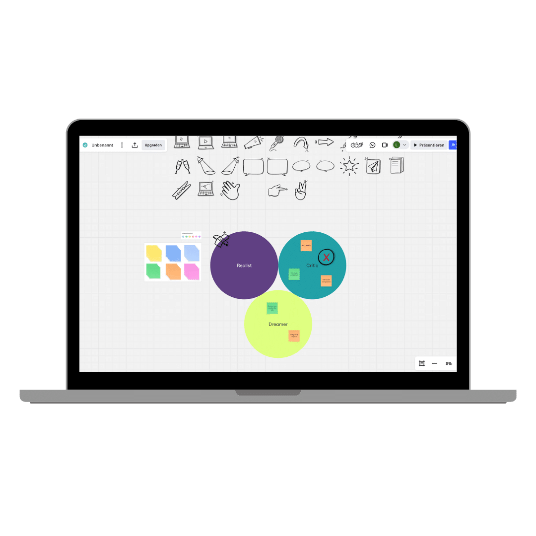 Ob Miro, Canva oder Mural, nutze die Icons, um Ideen sichtbar zu machen, Themen zu strukturieren und Inhalte visuell zu erklären.