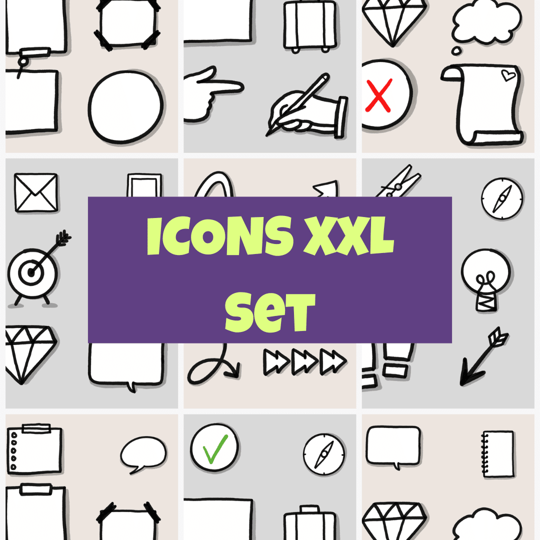 50 handgezeichnete Sketchnote-Icons, die dir helfen, deine Inhalte besser zu strukturieren, indem du visuelle Anker setzt, damit sich deine Kunden besser zurechtfinden und deine Wiedererkennung steigt.